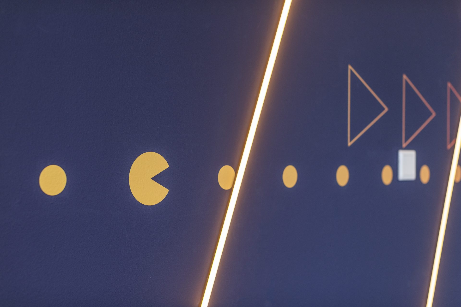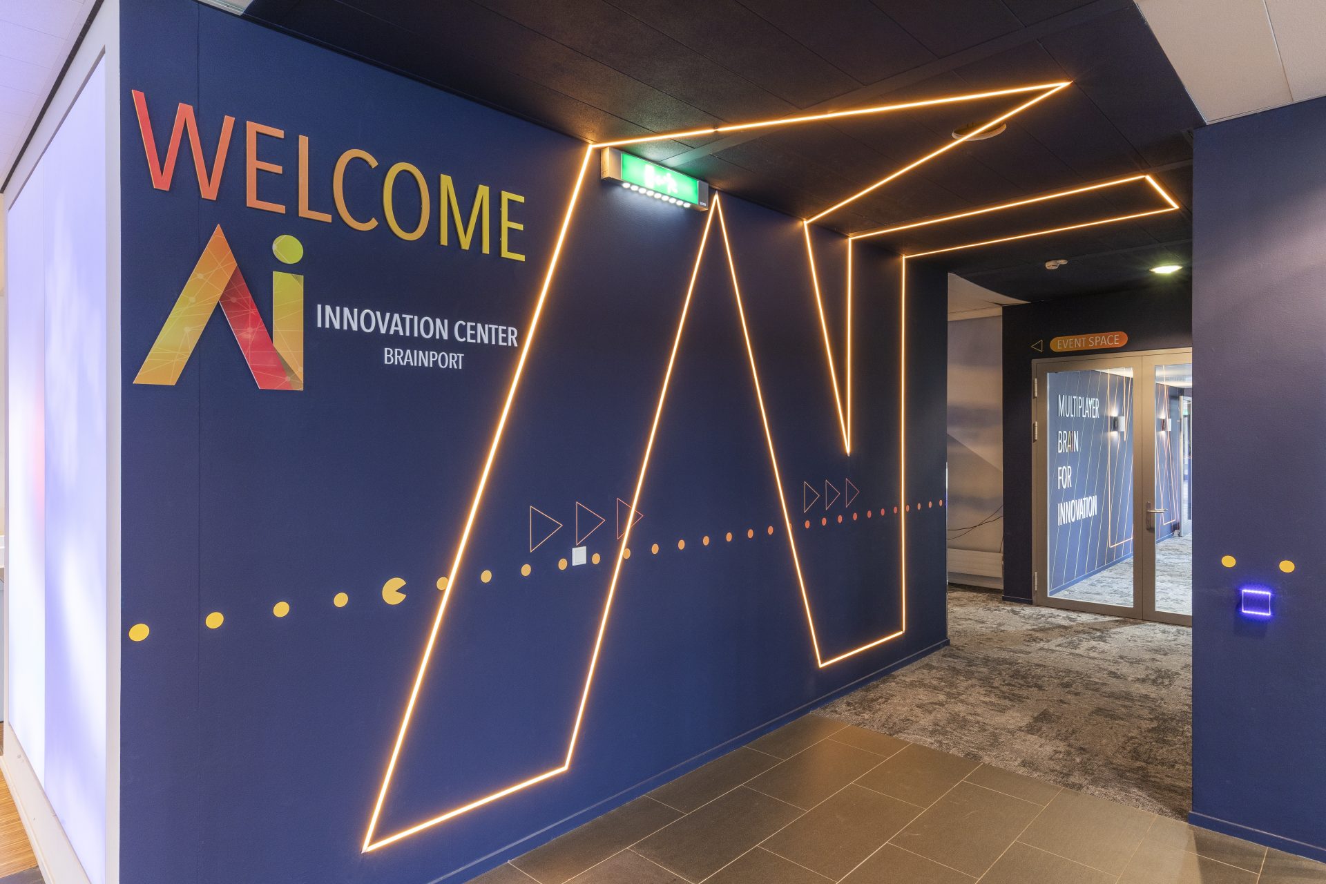 Het interieurconcept A(I.) Multiplayer Brain of Innovation is geïnspireerd op arcade videogames en vertaalt speelsheid, samenwerking en experimenteren naar de ruimte. Uitgesproken kleuren, neonverlichting en opvallende objecten zorgen voor een uitnodigende en energieke omgeving waarin ideeën en AI-oplossingen samenkomen.
